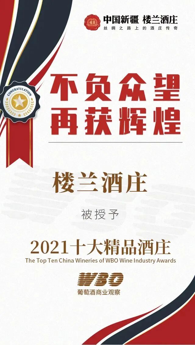 不负众望,再获辉煌!楼兰酒庄被授予2021十大精品酒庄