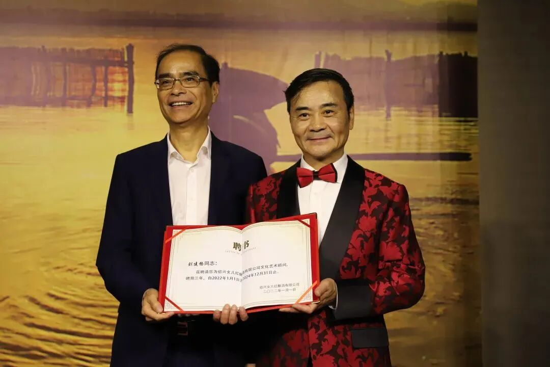 大国工匠、绍兴女儿红酿酒有限公司董事长胡志明向刘建杨颁发了女儿红文化艺术顾问聘任书,刘建杨将以独特的“大话绍兴”挖掘“女儿红”文化,推介宣传“女儿红”。胡志明说,“女儿红”是绍兴所有黄酒中有文化、有人情味、有故事的品牌,受到国内外消费者的喜爱。在与市场的对接、现代与古代的碰撞、传统和时尚的对话、旅游休闲与文化艺术的融合中,“女儿红”更富有魅力。这次与江南“美猴王”刘建杨合作,就是为了让名人名角讲好绍兴黄酒的故事,让“女儿红”在市场上更红,受到更多消费者喜爱。