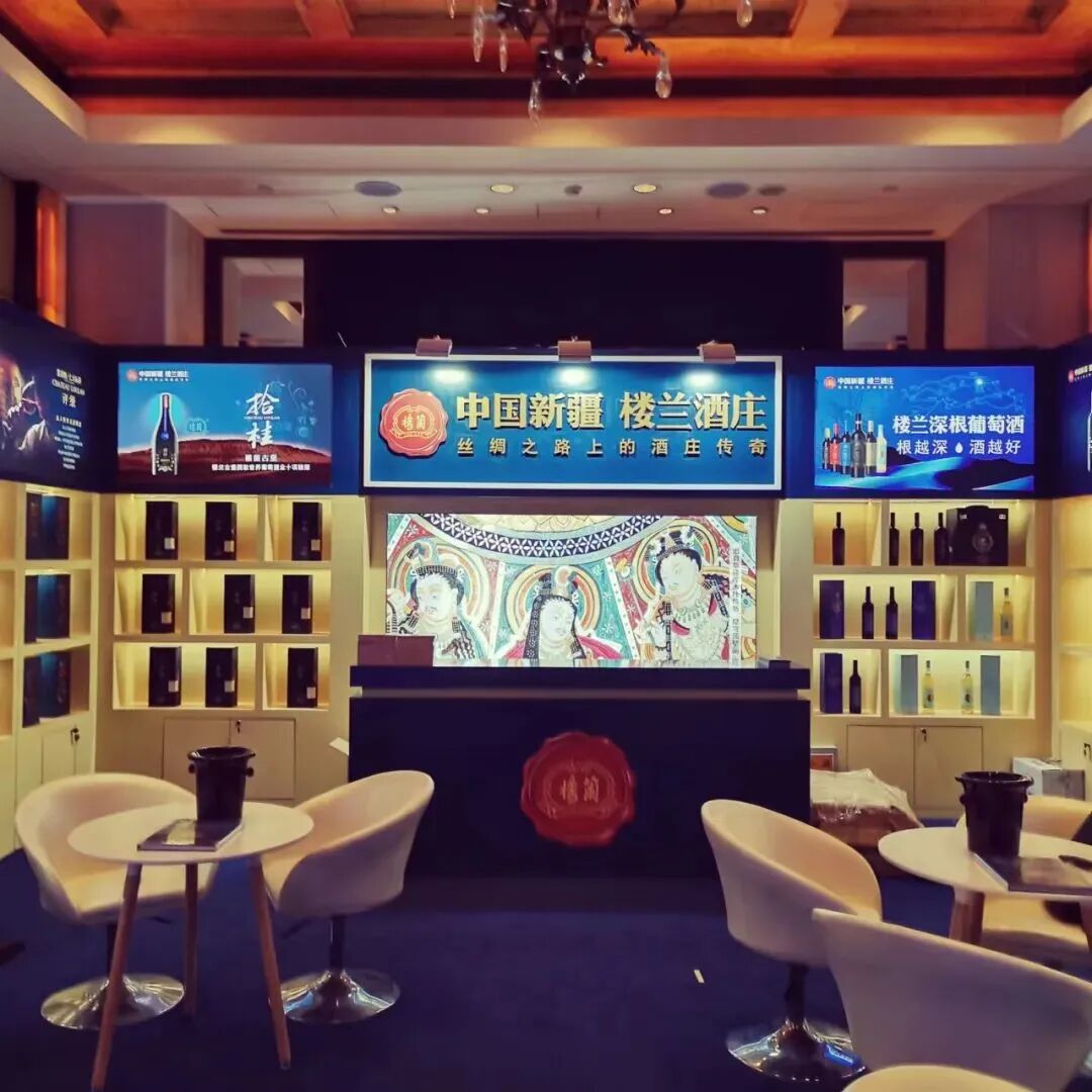 楼兰酒庄的展位,主要突出的重点即是时尚新颖,又延续传统。