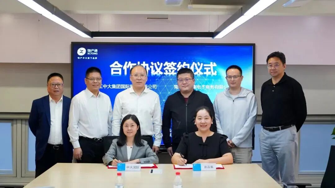 中大生命科技总经理祝妃代表中大国际与惠品集签署合作协议。物产中大云商、惠品集相关领导,中国通用集团投资高级合伙人孔焱见证签约。