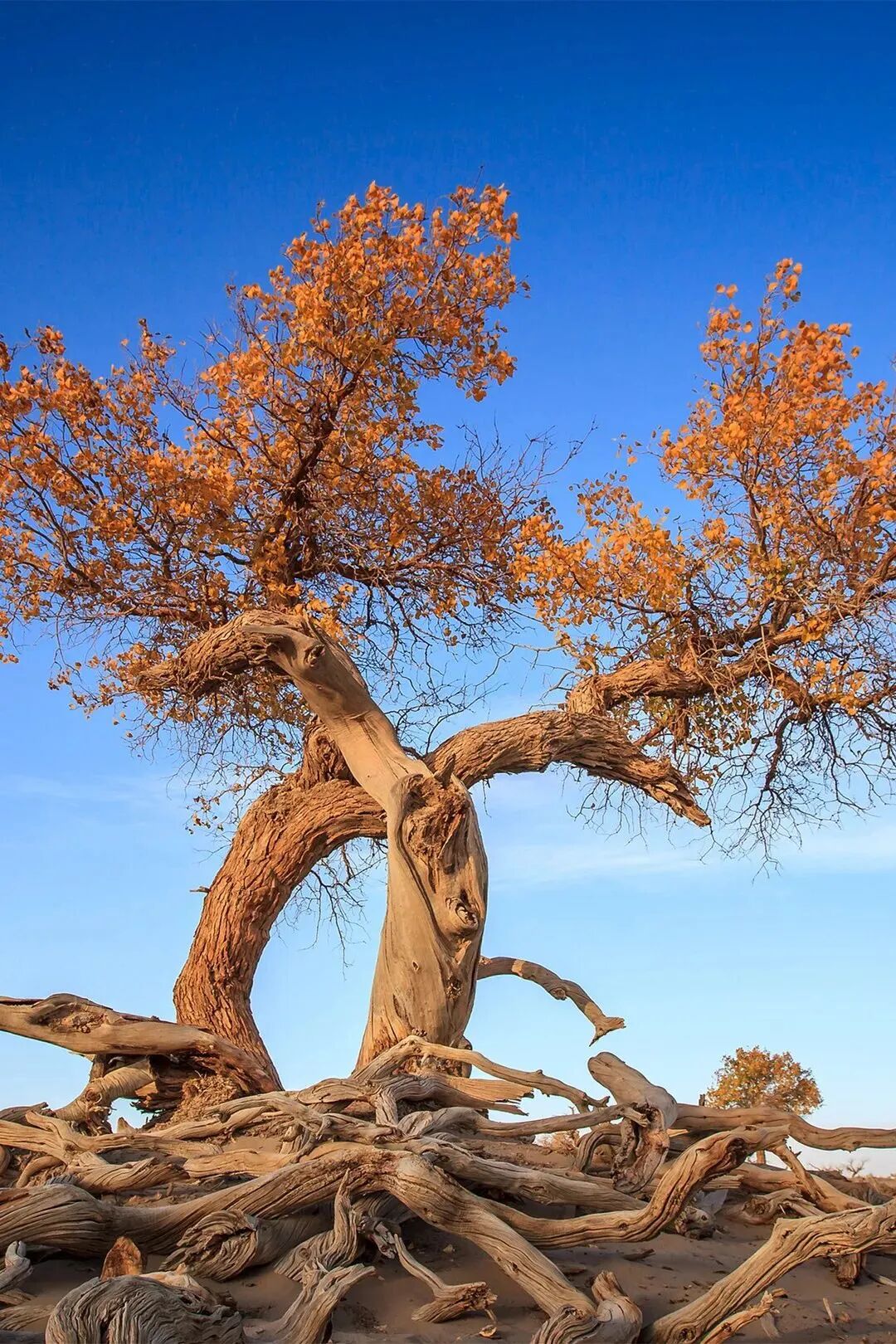 胡杨树被很多人称为“沙漠英雄树”。活着一千年不死,死了一千年不倒,倒后一千年不烂。胡杨树生长在沙漠里,戈壁上,它耐高温,耐盐碱,耐渍涝。