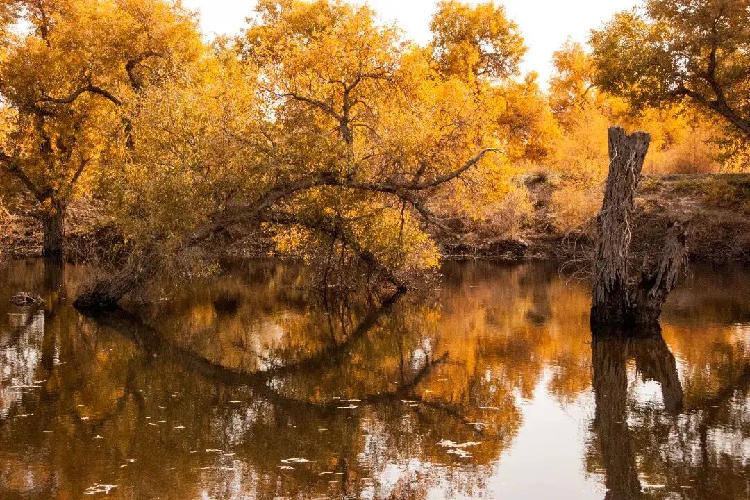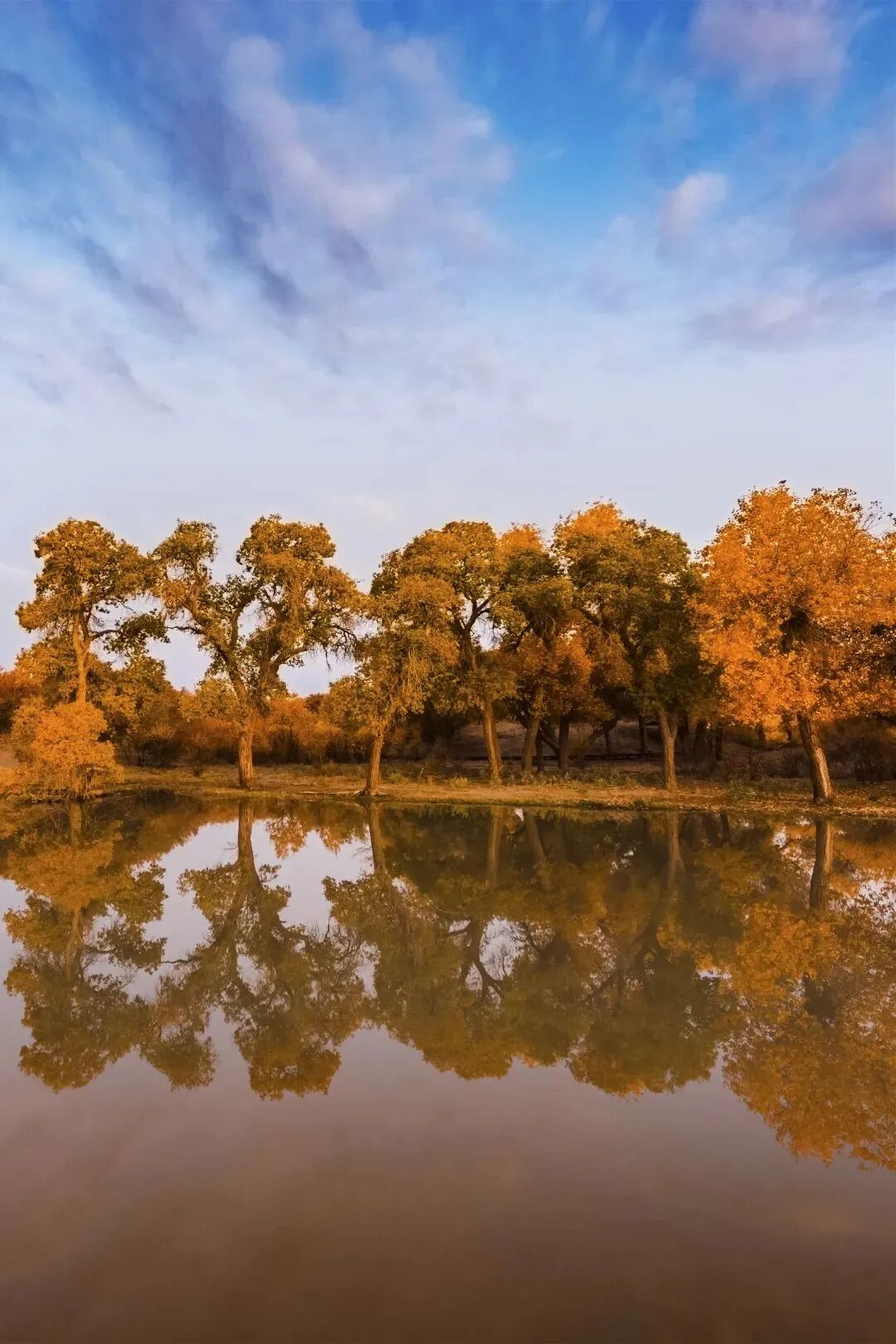 轮台胡杨林是国内观赏胡杨林的最佳地之一,是世界上最古老,面积最大,保存最完整,最原始的胡杨林保护区,拥有100平方千米胡杨林。金色的胡杨林沿塔里木河蜿蜒而去,清澈的湖水里倒影着岸边斑斓的美景。穿梭在其中,仿佛置身于童话世界里。
