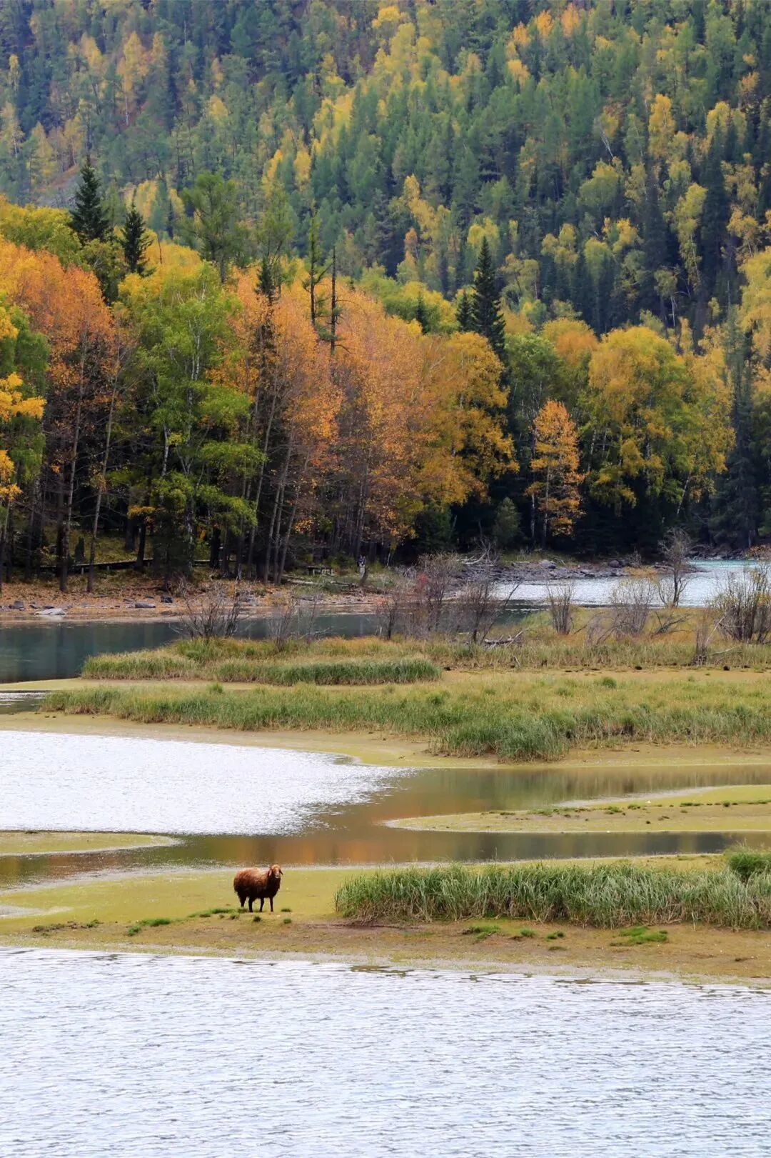 金秋时节的新疆,恍若一幅油画。有五彩斑斓,层林尽染的彩林;有一幅幅恰似田园牧歌图般隐秘于世的村庄;有与天高云淡相呼应一望无际泛起片片金黄的草原;有一片片如同点缀在苍茫大地上宝石般的湖泊...