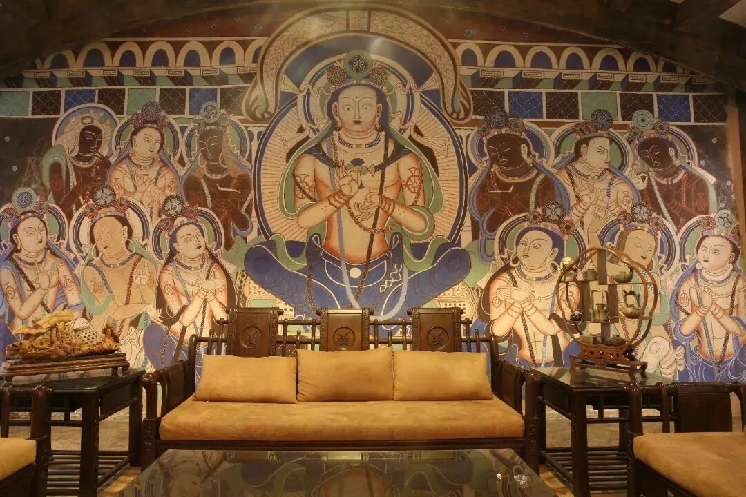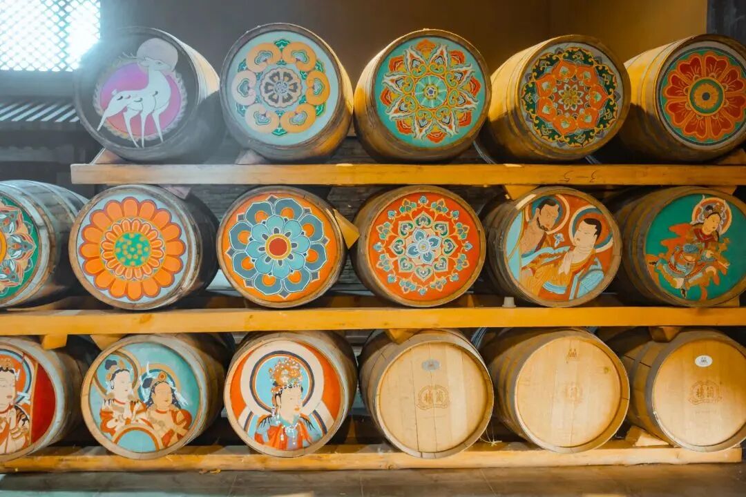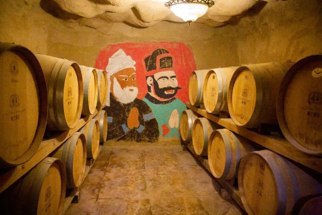 酒窖内的56个小型储酒间形似佛教洞窟,每一个洞窟里侧都是一幅壁画,这些壁画是经过精心挑选,大部分是来自距离鄯善县70公里处柏孜克里克千佛洞,个别是来自库木吐拉千佛洞。