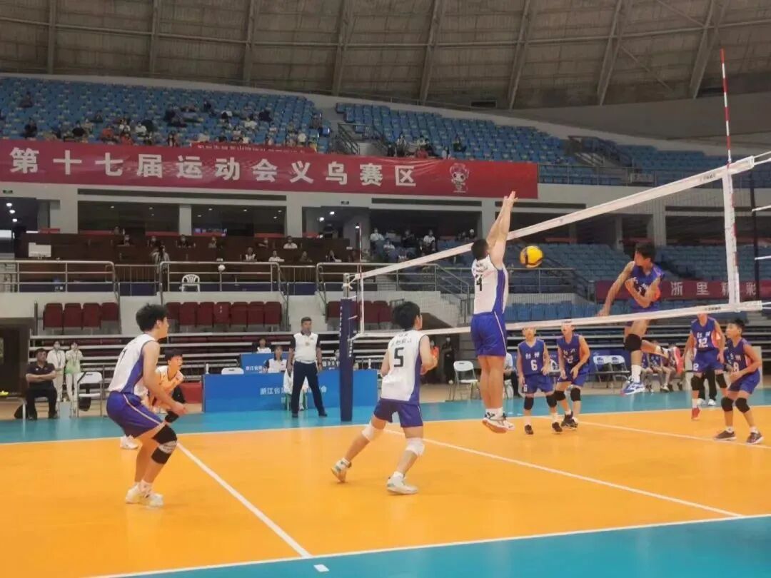 9月17日下午,在义乌举行的2022年第十七届浙江省运会排球男子(丙组)决赛中,...