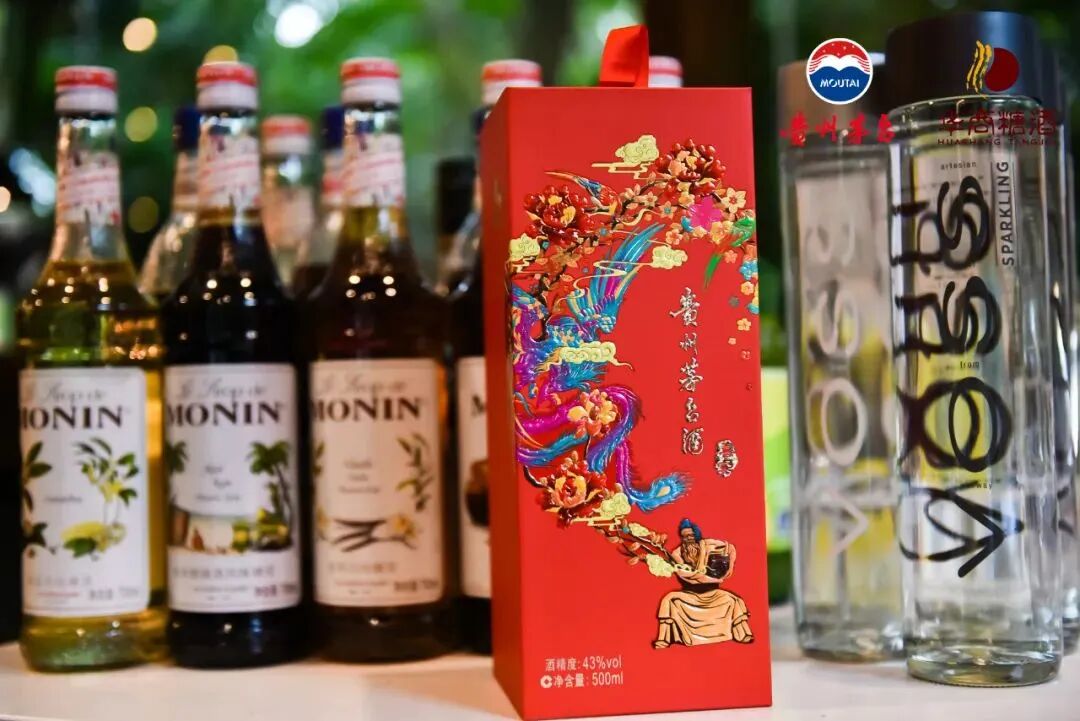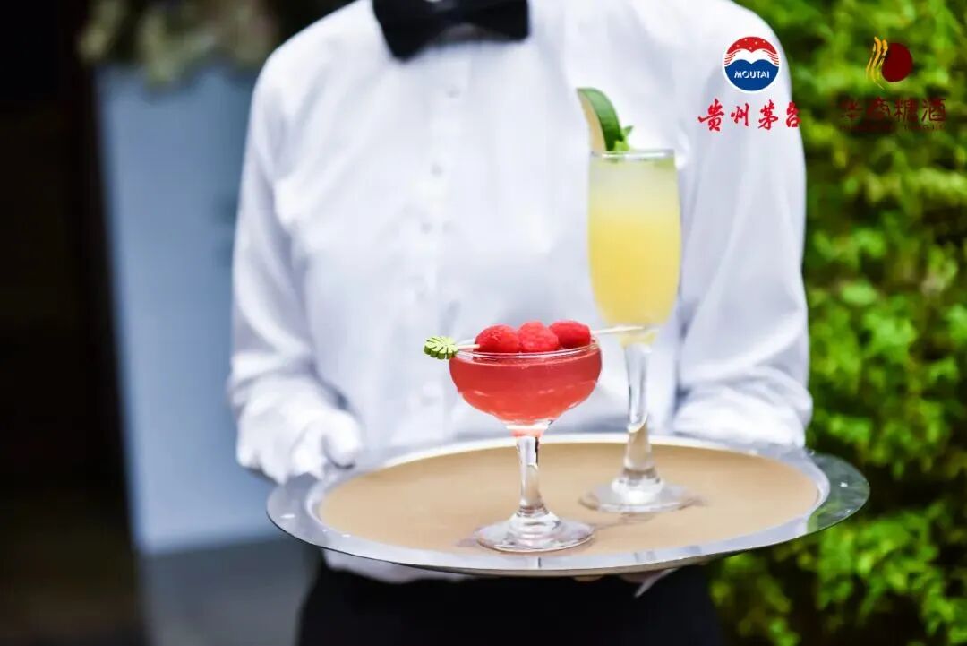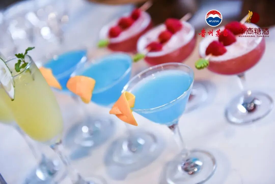 现场来宾品鉴茅台特色鸡尾酒:以茅台喜宴作为基酒,再配以各色果汁等其他辅助材料,加以搅拌或摇晃而成的一种混合饮品,此外还用柠檬片、水果或薄荷叶等作为装饰物。