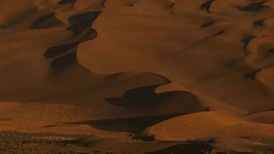 车在沙山之间蜿蜒深入,只有转角,没有尽头。流光飞舞,一层一层铺陈沙土,在渐变的色温里,我们驶入与历史重叠的画卷。时间被染成金色,成了每一个亲历者叙事的底色。那个要用千言万语说给你听的故事,此刻,都变成沉默如谜的呼吸。