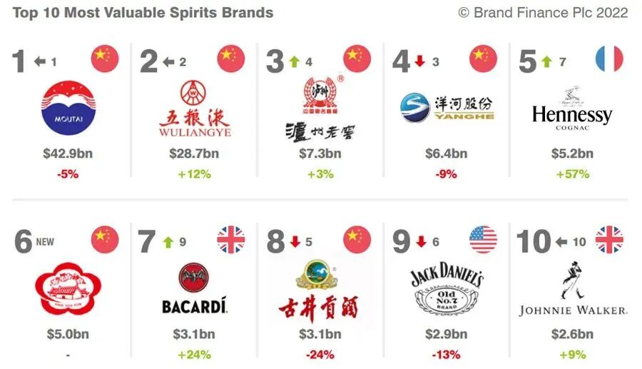 英国品牌评估机构“品牌金融”(Brand Finance)发布“2022全球酒类...