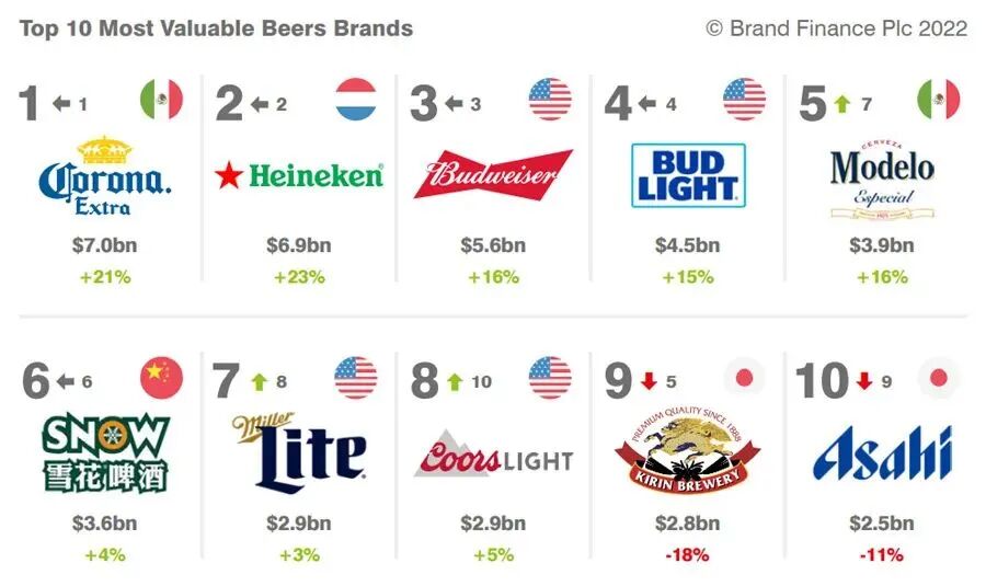 2022全球啤酒品牌价值50强