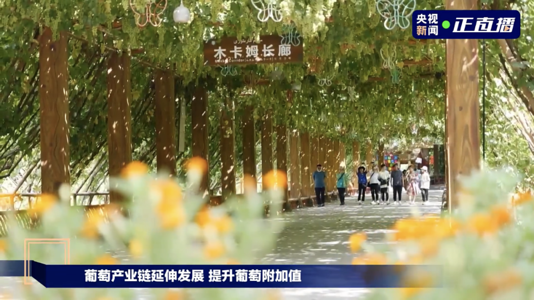 今年吐鲁番57万亩葡萄种植地葡萄产量可达120万吨,在吐鲁番的街头小巷会看到许多挂着葡萄的葡萄藤,当地政府也欢迎游客在不浪费的情况下摘下几颗葡萄品尝。这不仅是吐鲁番人民热情好客的象征,葡萄也成为了各地游客心中吐鲁番的一张璀璨名片。鲜食葡萄的采摘销售不仅促进当地农民的收入,当地政府也借葡萄这一张名片,大力开展葡萄采摘旅游业及葡萄相关其他产业链,这明显提升了吐鲁番当地的就业率,也带动了吐鲁番的经济发展。