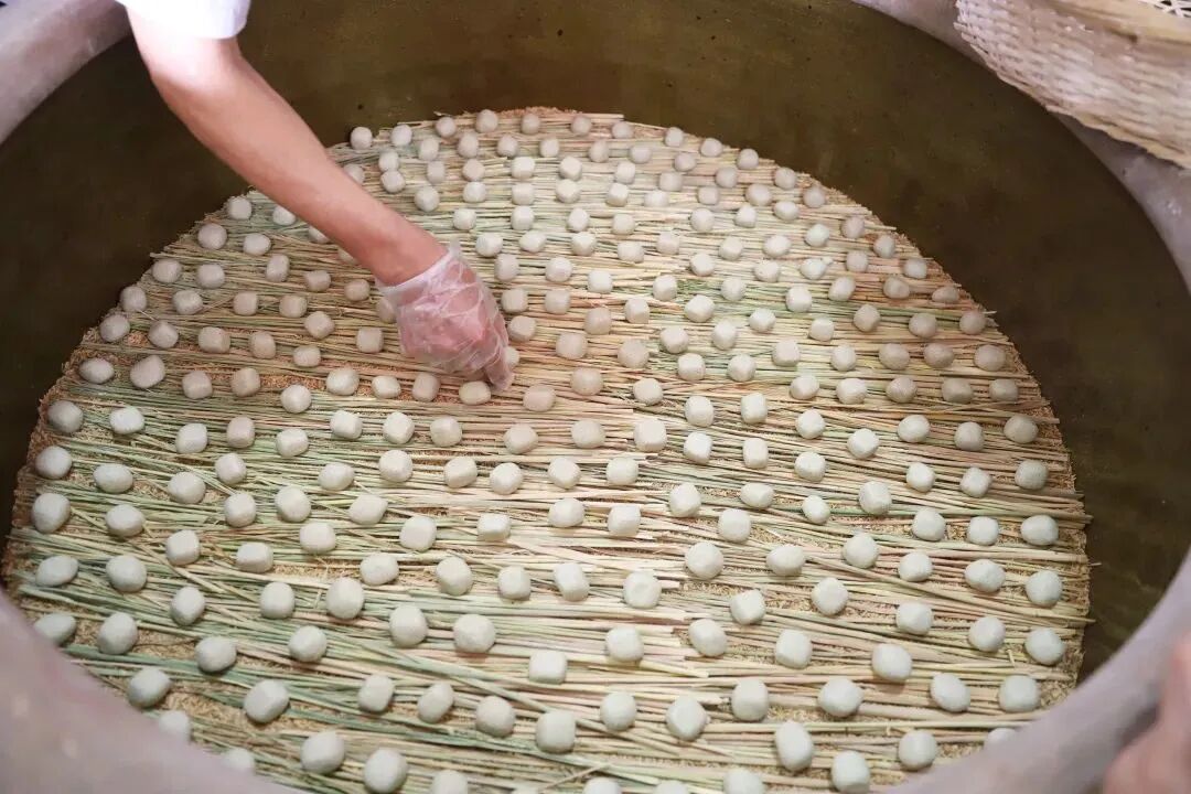 “酒药一定要放置在稻草上面,不然会黏在砻糠上。”