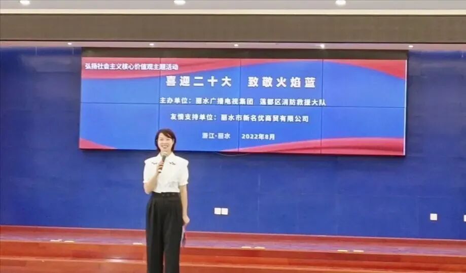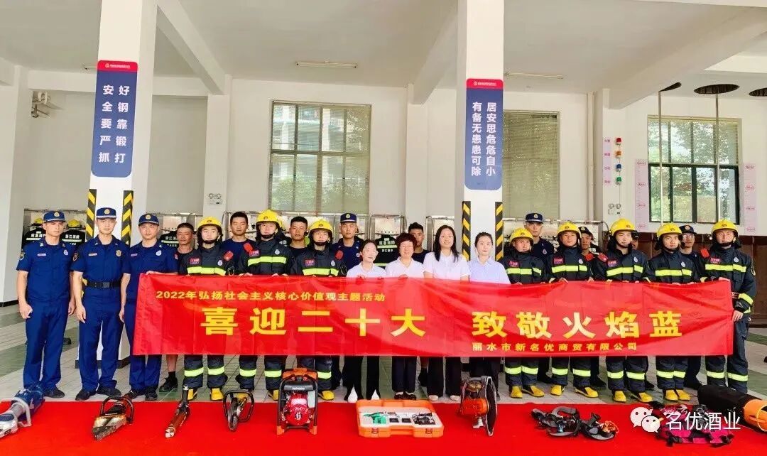 正当盛夏,万物峥嵘。日前,丽水市新名优商贸有限公司与莲都区消防救援大队、丽水广播电视集团共同联合举办了 “喜迎二十大,致敬火焰蓝”的活动。