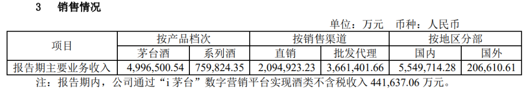 报告中特别备注,贵州茅台在报告期内通过“i茅台”实现酒类不含税收入44.16亿元。
