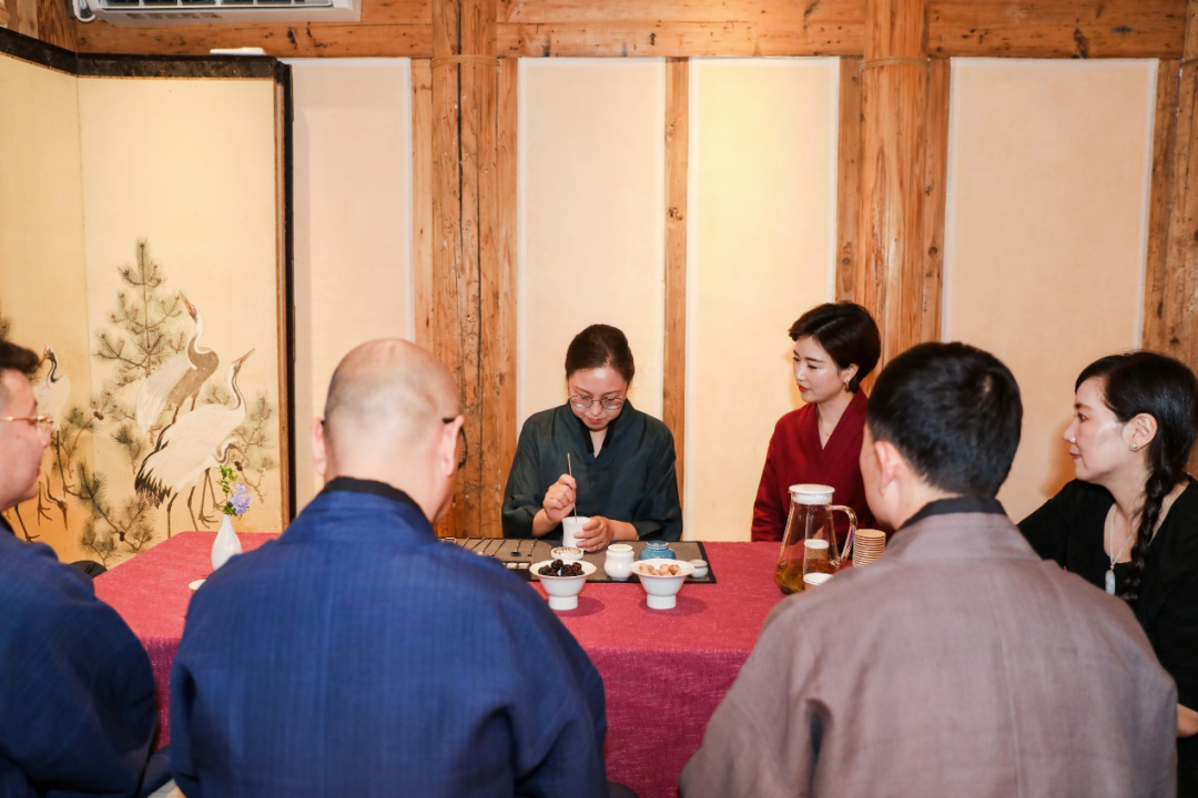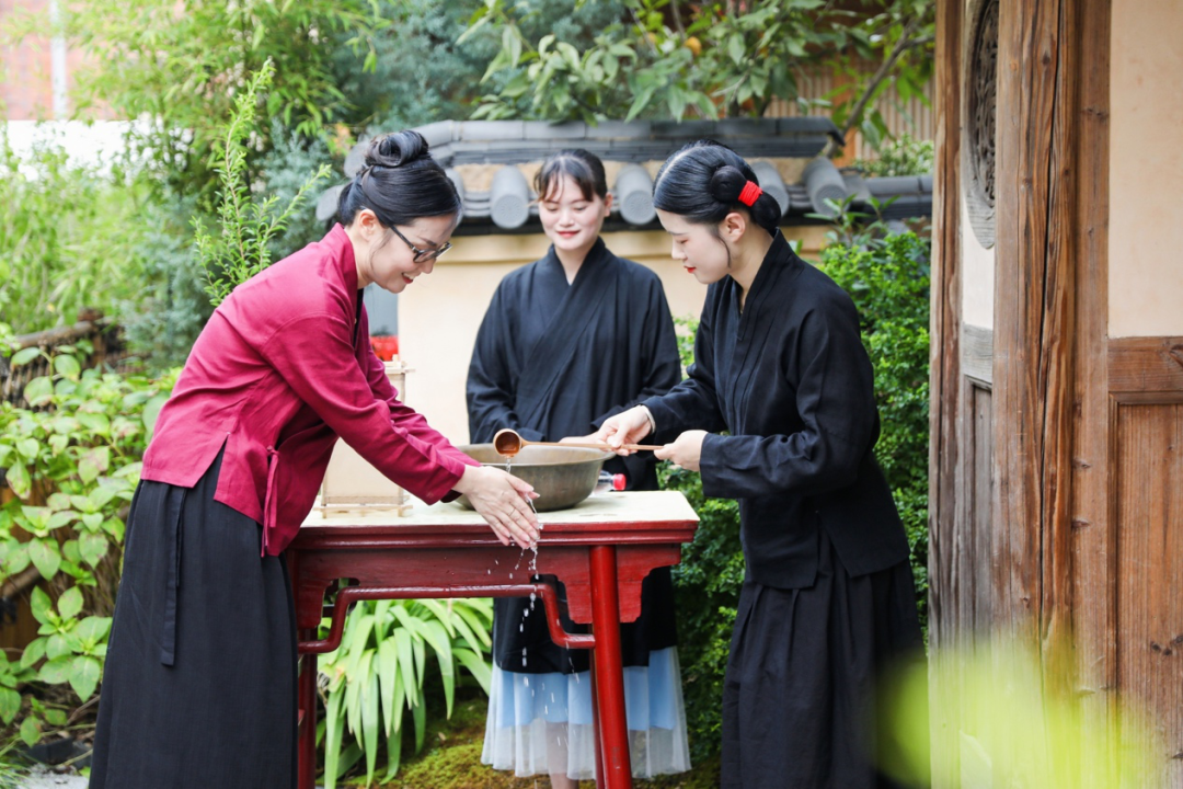 活动地点选在了坐落于杭州市西湖区龙坞茶镇的【宋 韵·钱 塘 观 礼】南宋人文美学空间,其庭院建筑是将福建三明的一座宋式官宅原构建搬运复构,距今已有四百年的历史,是杭州市首批宋韵文化体验点,其中集合了建筑、服饰、茶、香、花、宋器、宋宴七大最具代表性的宋韵文化于一体,打造出宋代文人雅集的场景。