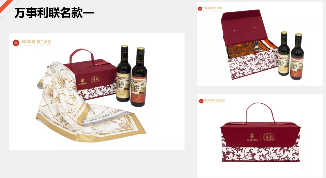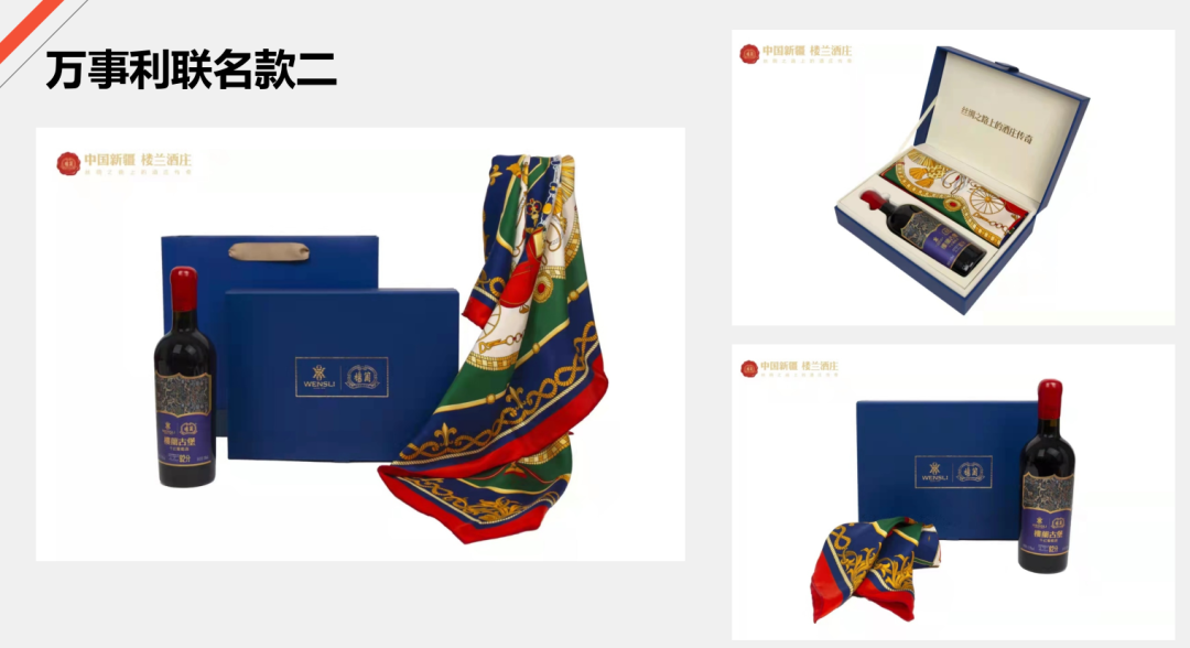 楼兰古堡赤霞珠干红葡萄酒搭配万事利双面印花丝绸方巾。