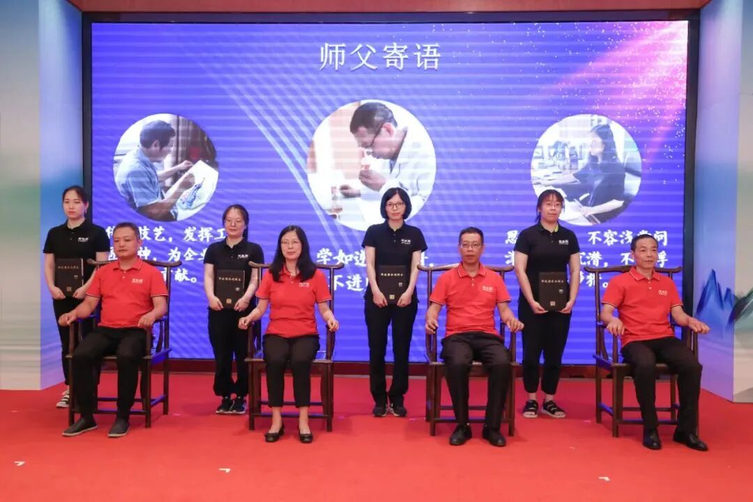 本次技能文化节开幕式有22位技术主管收徒传技,他们来自公司不同岗位的技术主管,包括酿酒岗位的技工,研发岗位的资深研究员,财务、审计等岗位的专业骨干,花雕岗位的工艺大师等。活动现场,22个徒弟向师傅进行鞠躬、敬酒,并收到师傅的《师徒传承记录本》,这本古越龙山订制的《师徒传承记录本》有拜师贴、回徒贴、师父寄语,也将记录师徒间日常技艺指导传授的内容,将是一份珍贵的技艺传承。