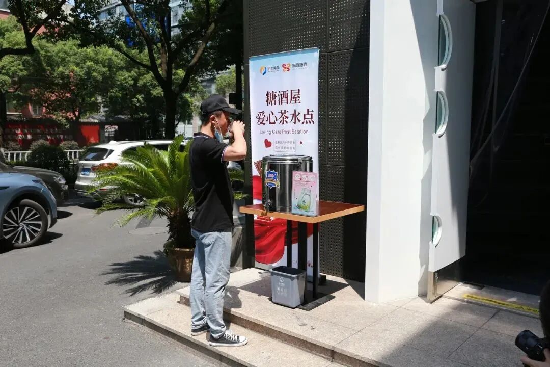浙商食品集团第五党支部五心舰队志愿服务队联合糖酒屋工作人员开设爱心凉茶摊,在浙商糖酒湖墅南路店门口持续性开展公益服务活动。
