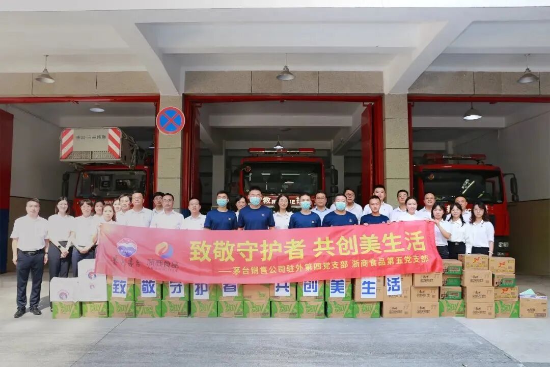 浙商食品集团第五党支部党员联合茅台销售公司驻外第四党支部及茅台集团驻浙党员共同开展茅台公益行活动,前往古荡消防中队进行慰问并赠送高温降暑用品。