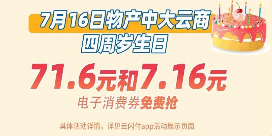 登录云闪付APP活动展示页面,免费获取价值71.6元和7.16元周年庆电子消费券