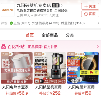 即日起至7月16日,拼多多九阳破壁机专卖店、九阳小家电专卖店、九阳西式厨房旗舰店部分商品畅享7.16折。