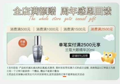 满1000赠兰蔻肌底精华眼霜,限量5个;