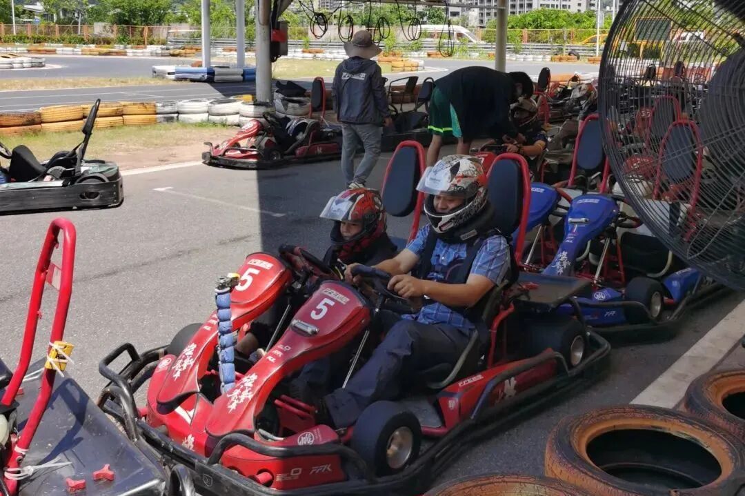 接下去,我们兵分两路,一部分小伙伴来到燃擎赛车主题乐园,体验开卡丁车的激情;另一部分小伙伴乘坐游艇,到进贤湾游湖。