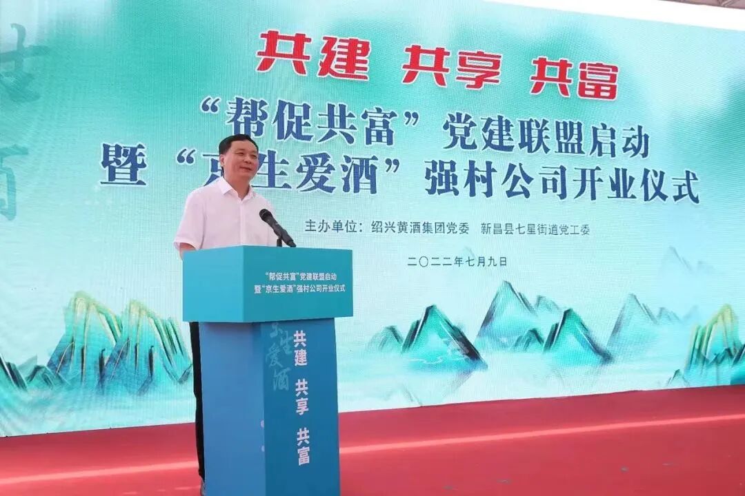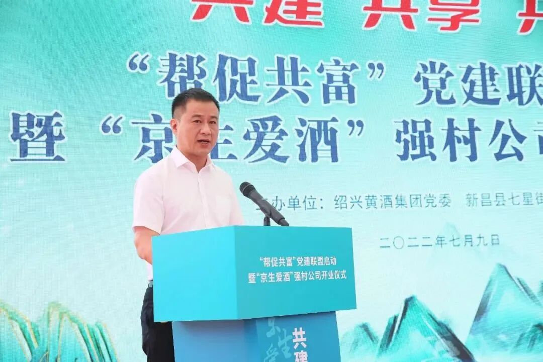 绍兴黄酒集团党委书记、董事长孙爱保在致辞中表示,黄酒集团作为一家国营70年的企业,古越龙山作为一家上市25年的公司,在帮促共富之路上,理应发挥作用,彰显国企担当。这些年来,我们通过建立糯稻基地和青梅基地等途径,在帮促共富上做了一些工作,但还远远不够。这次我们与七星街道共建党建联盟,就是想发挥更大的作用,展现更多的担当。消薄共富,不能光靠“输血”,更需要“造血”。“京生爱酒”强村公司以优惠价供应优质绍兴酒,黄酒集团完全让利给强村公司。