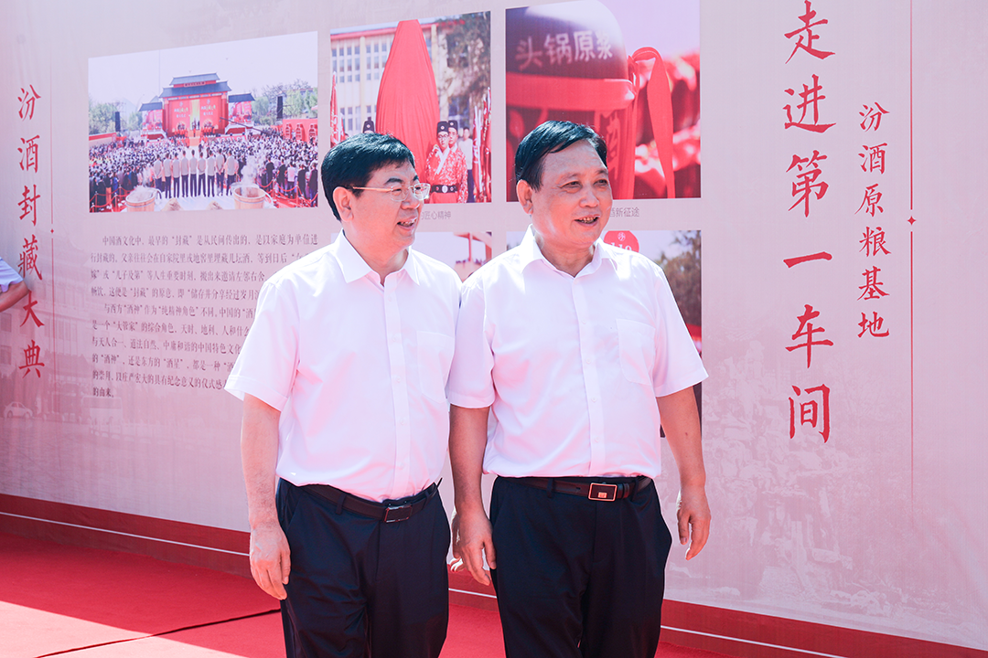 仪式上,汾酒党委书记、董事长袁清茂与山西省食品工业协会会长、汾酒集团原董事长李秋喜两代汾酒“掌门”一起亮相,中清酒业酿造技艺发展中心副理事长、著名白酒专家赵严虎,汾阳市委常委、杏花村经济技术开发区党工委书记、管委会主任韩学尧也受邀出席。