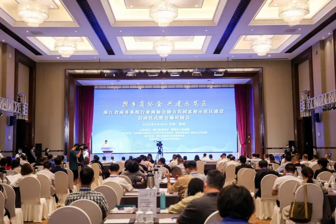 2022年6月29日上午,由浙江省商务厅、衢州市人民政府主办,中共浙江省商务厅行业协会商会委员会、衢州市商务局、衢江区人民政府承办的浙江省商务系统行业商协会助力共同富裕示范区建设启动仪式暨首场对接会在衢州市衢江区举办。