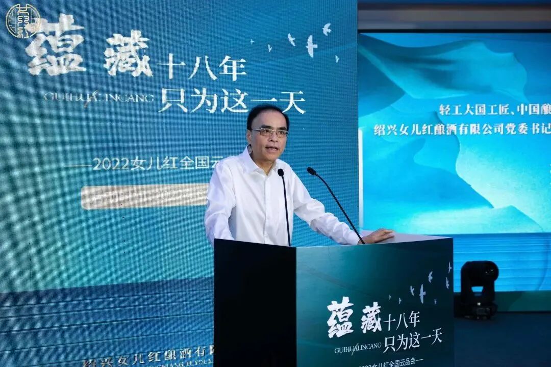 中国酒业协会黄酒分会理事长、绍兴黄酒集团党委书记、董事长、总经理孙爱保在致辞中感谢了中国酒业协会对“中国黄酒之都、世界美酒产区”——绍兴的关心和支持,以及绍兴黄酒行业协会、黄酒同仁们对绍兴黄酒集团和古越龙山股份公司的关爱和帮助,肯定了女儿红公司创造的数个黄酒行业“唯一”:唯一的轻工“大国工匠”、唯一的“大师工作室”、唯一的全国人大代表、唯一的省级先进党组织,还有今天创造的唯一的八位大师相聚会、唯一的中国黄酒“云品会”。黄酒复兴是我们义不容辞、责无旁贷的责任,我们勇毅前行,坚信明天会更好。