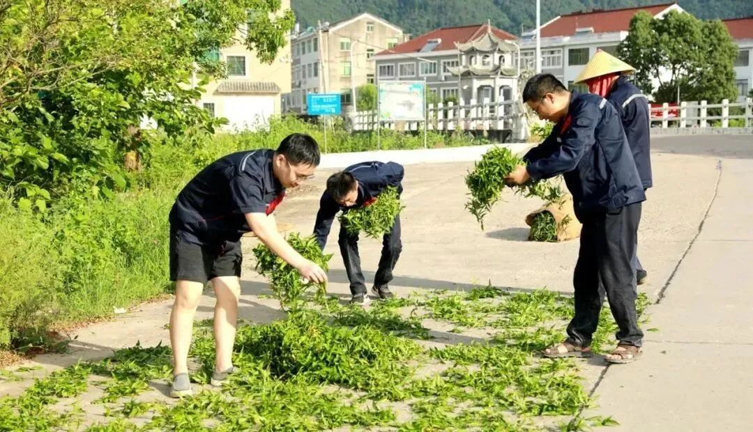 一大早,孙国昌就和同伴一起,来到提前踏勘好的溪边收割辣蓼草。大家快速地拿上工具把草料割好,除去黄叶、杂草,当天就地晒干,趁热除茎留叶。等辣蓼草采集到了一定的数量,第一时间将晒干的辣蓼草捣成碎末,待用。