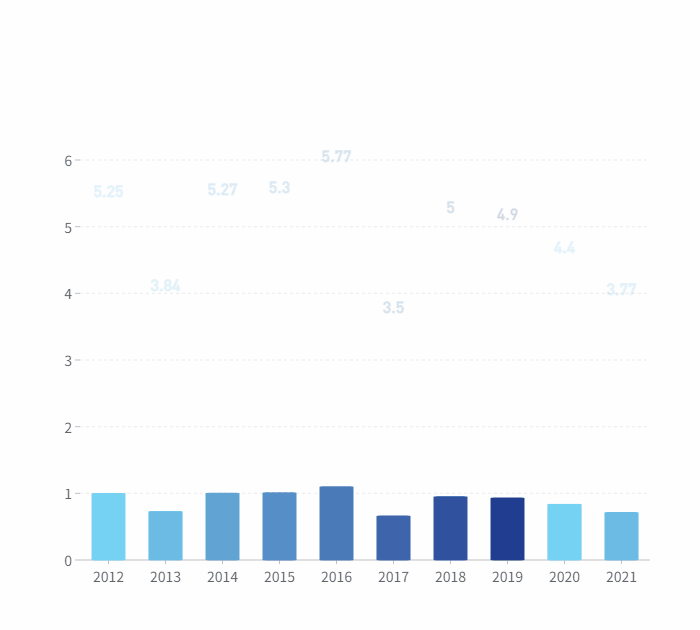 CIVB数据显示,因天气条件变化,波尔多葡萄酒的产量已经连续4年下跌。2018-2021年,其产量分别为5.00亿升、4.90亿升、4.40亿升、3.77亿升。其中,2021年减产明显,接近十年间的最低值3.5亿升,相比2020年下降14%,低于十年平均水平20%。