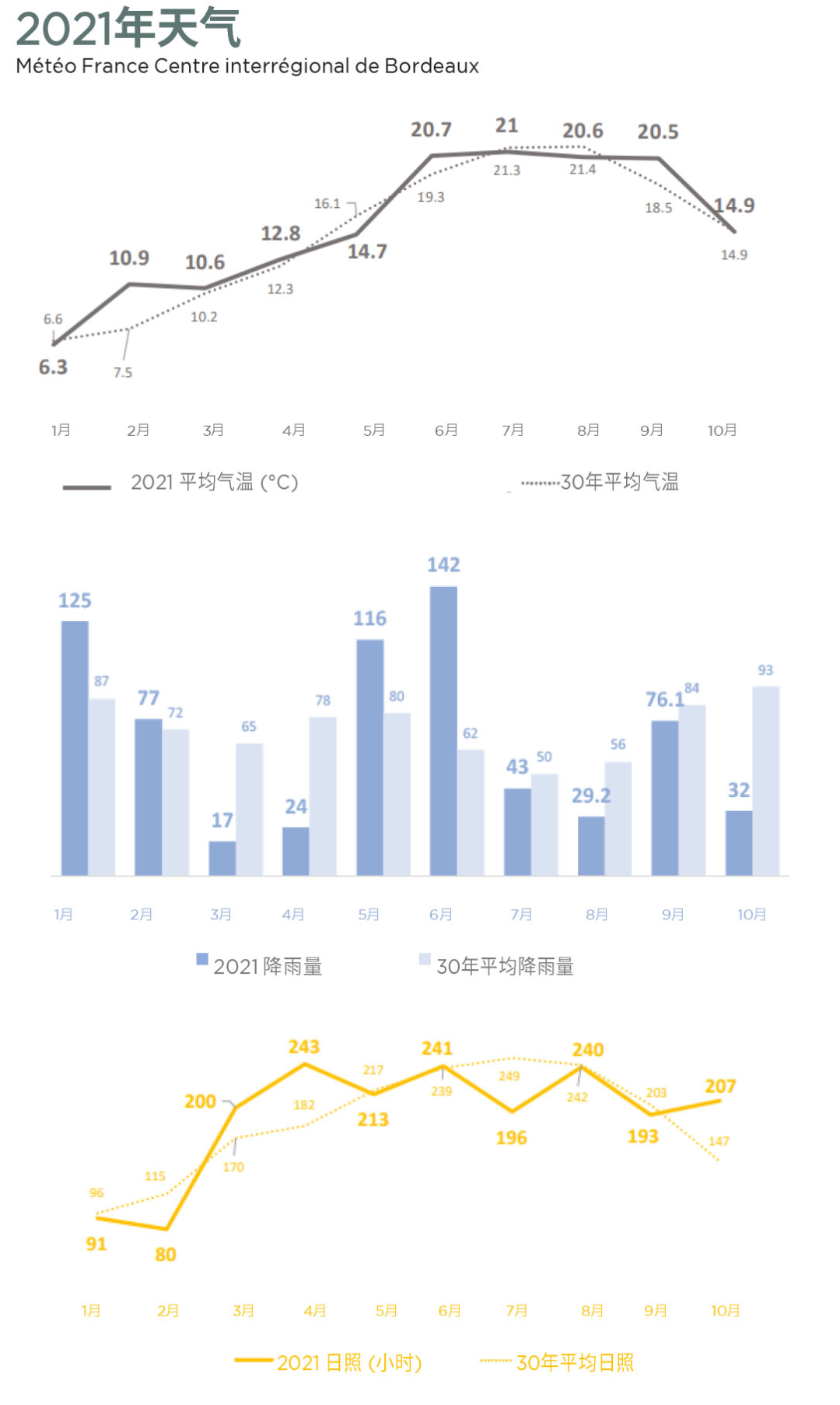 ▲2021年波尔多产区月平均气温(图源:波尔多葡萄酒2021年年份报告)
