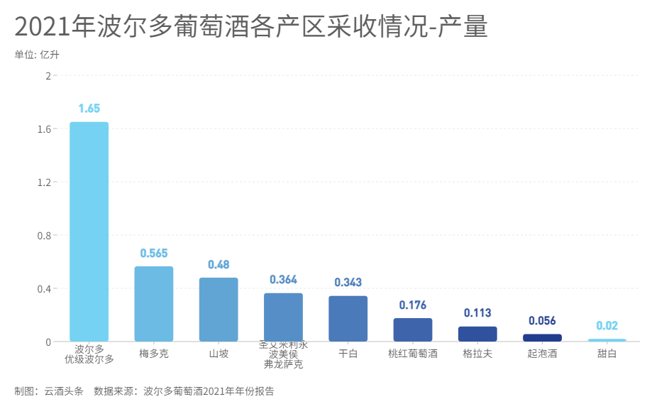 在2021年产量减幅不小,以及中国进口葡萄酒市场低迷的背景下,波尔多葡萄酒对华出口量额齐增的现象引人瞩目。