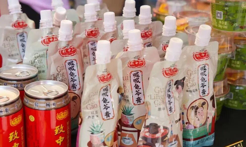 清凉消暑的龟苓膏,毫无悬念蝉联致中和展位热销爆品TOP1的头衔,近千袋吸吸龟苓膏全部售罄。