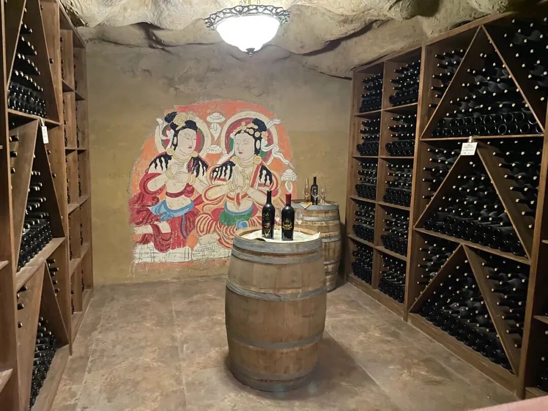 酒窖内的56个小型储酒间形似佛教洞窟,每一个洞窟里侧都是一幅壁画。
