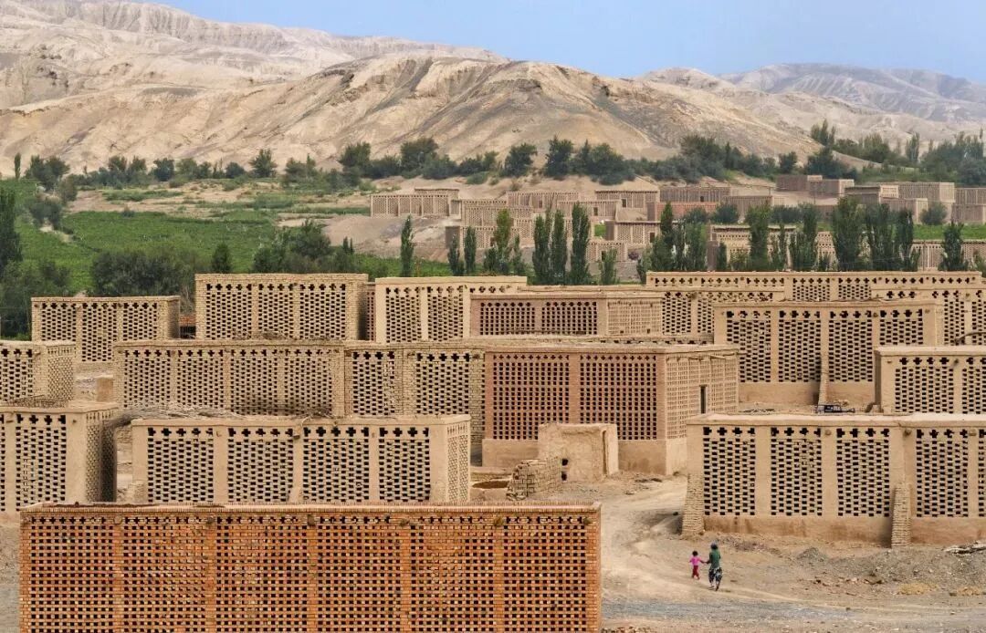 到今天,葡萄依旧是吐鲁番的主角。从吐鲁番到鄯善的公路两旁,时不时会看到一大片“蜂窝状”的房屋建筑,这是当地农户制作葡萄干的操作间——晾房。