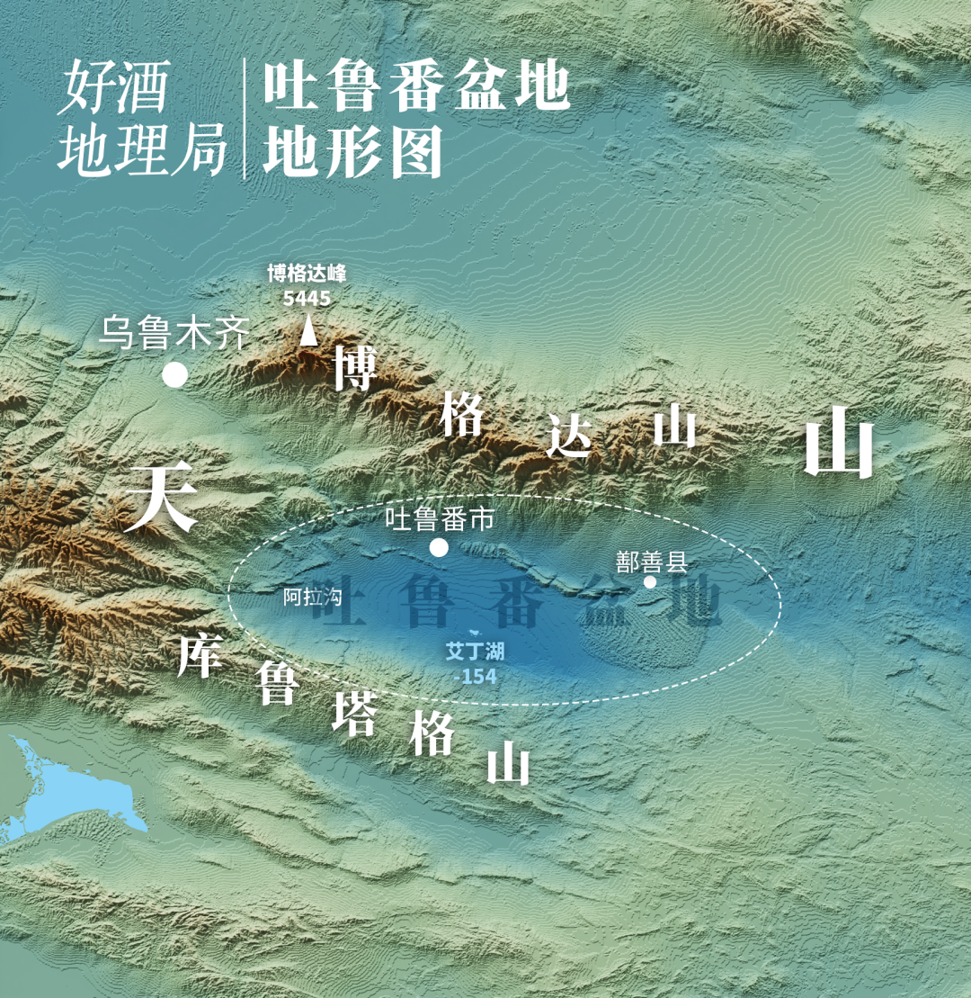 在地图上,吐鲁番盆地宛如一颗橄榄球,被镶嵌在亚欧大陆腹地。