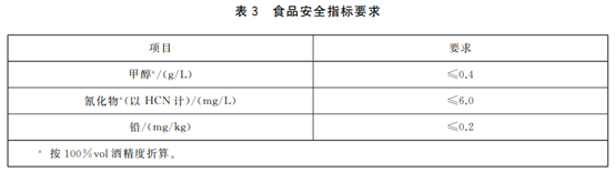 食品安全要求主要考虑到目前企业检测检测能力和有害物控制能力完全能够满足安全生产的要求,以及调香白酒生产的实际情况,调配传统酿造白酒存在一定比例,从而来源于传统酿造白酒原料谷物本身的甲醇、氰化物含量在调香白酒里有所下降,故适当提高限定值,满足团标不低于国标的原则。