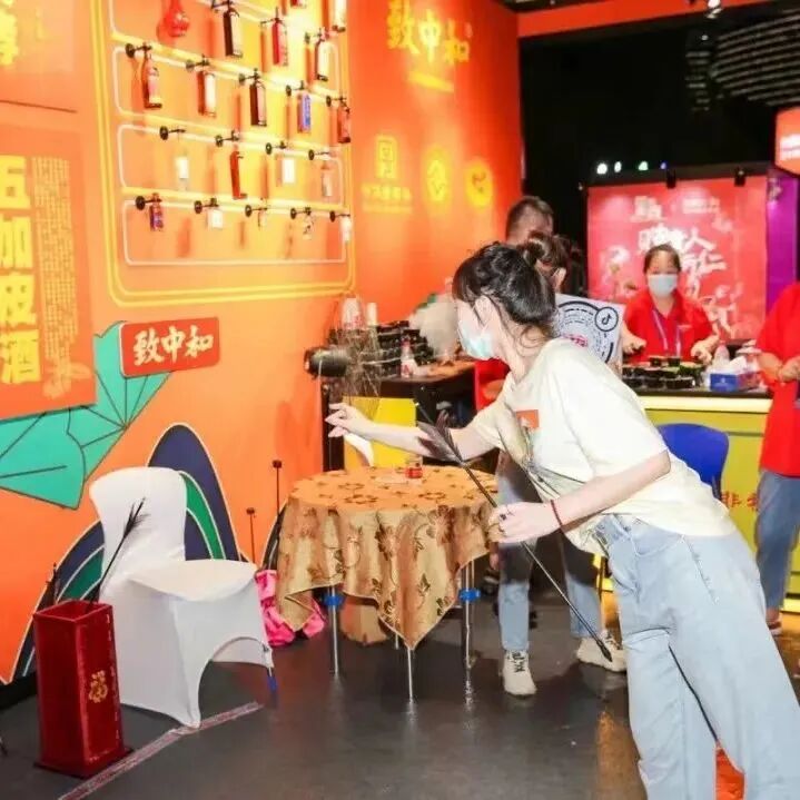 现场只需扫码关注致中和抖音账号,即可免费玩一次投壶游戏,投中就有奖哦!