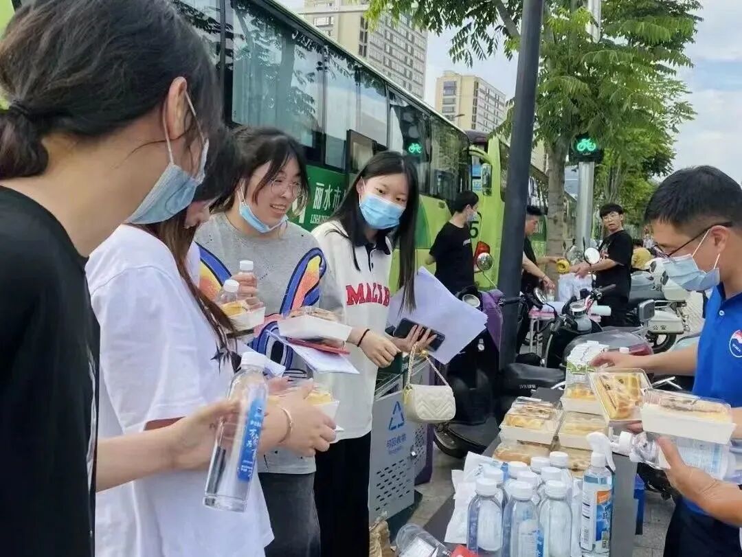 高考考的不仅仅是考生和家长,更是全社会对孩子求知求进的尊重。在炎炎夏日下,丽水市新名优商贸有限公司在(丽水第二高级中学)高考点设立服务站,为考生、陪考家长、警务人员及后勤人员提供了牛奶、面包、矿泉水、文具等便利服务,为他们不辞辛苦的守候送上一丝温暖与祝福,为考生们加油助威。