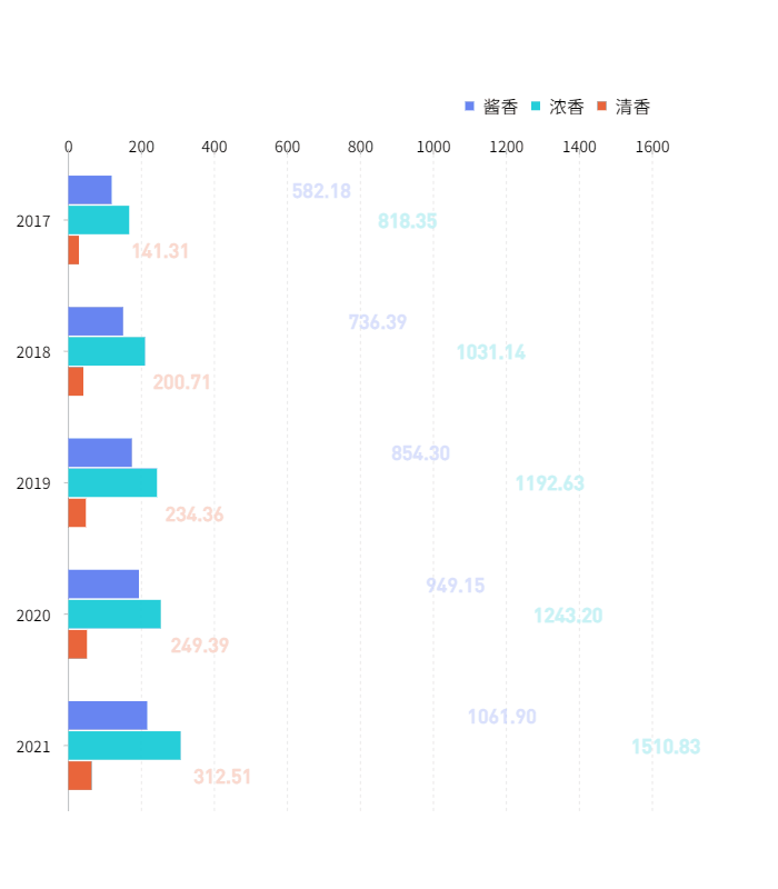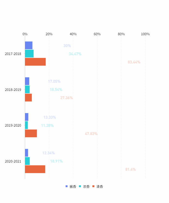 茅台一骑绝尘、浓香阵营庞大、大清香高速增长,业内有关“酱香反超浓香”“大清香时代即将到来”的猜想能否得到印证,其他香型还有何种表现?