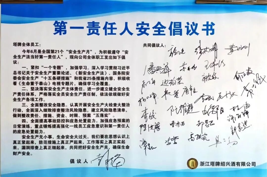 今年6月是第21个全国“安全生产月”,根据塔牌公司《2022年“安全生产月”活动方案》部署要求,6月6日,公司特组织开展根据“安全生产月”活动“遵守安全生产法、当好第一责任人”主题的安全生产月启动会。会议进行了签订“第一责任人安全倡议书”、观看《生命重于泰山》专题片及“第一责任人专题讲安全”三项议程,公司董事长袁承海等领导以及各部门负责人参加启动会。