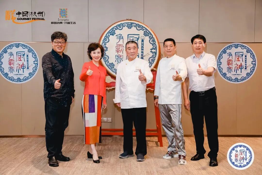 专业评审团队从左至右:著名媒体评论员俞柏鸿、杭州市政协委员、著名主持人杨莅、杭城厨坛泰斗叶杭胜大师、杭帮菜大师王政宏、杭州菜小生科技有限公司总经理葛文彬