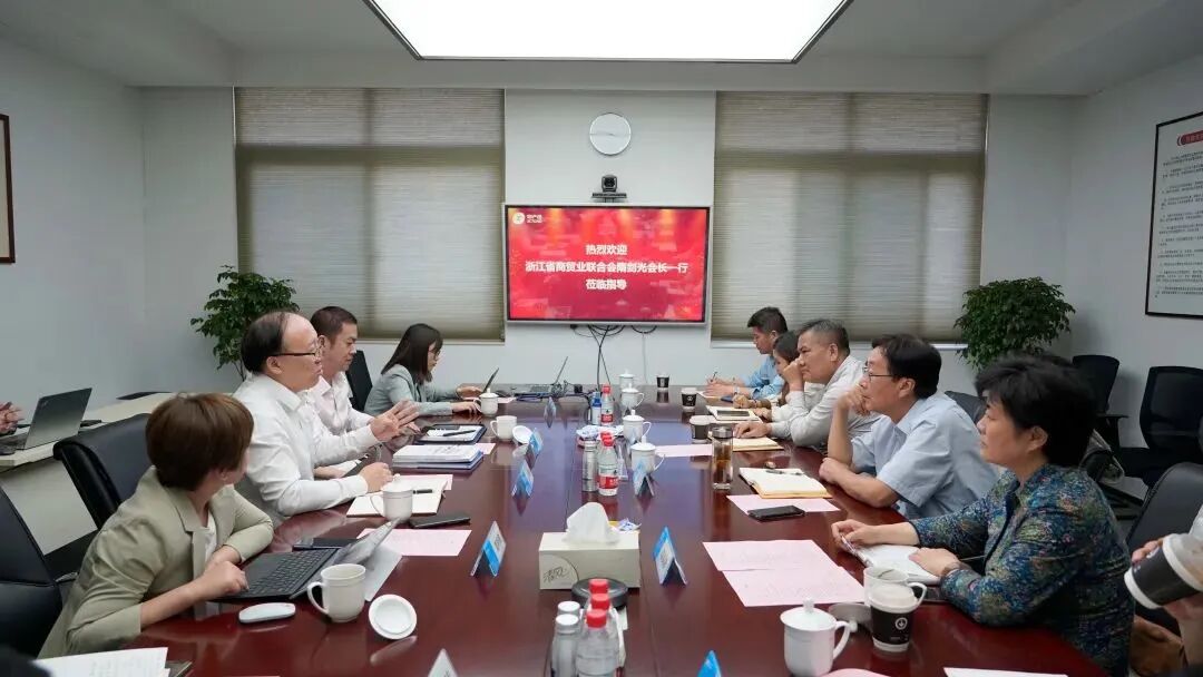 徐斌毅对隋剑光会长一行的到访表示热烈欢迎,并介绍了物产中大云商近年来的发展特色和创新成果。他表示,希望能在浙商联的指导和支持下,以物产天地中心为载体,在行业课题研究、消费品牌赋能等方面深化双方合作。