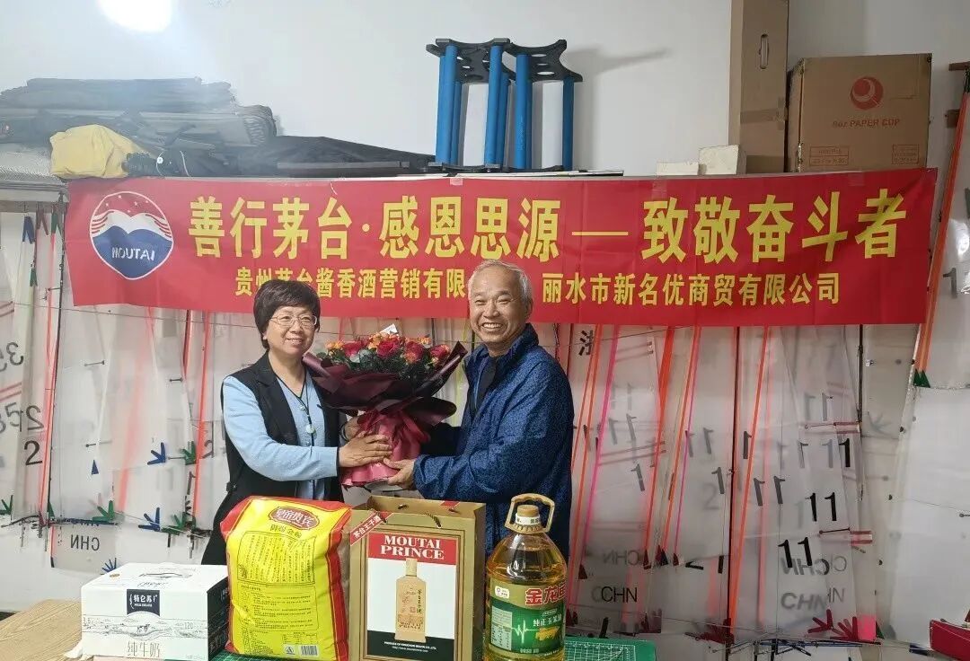 在走访过程中,名优董事长去到了庄志清工作的场所,为他送上茅台酱香经典酒、牛奶、大米、食用油等慰问品以及鲜花。丽水市新名优商贸有限公司总经理杨妃询问了他的身体状况及子女生活、工作情况,亲切地与他唠家常、问冷暖,叮嘱他要注意身体。这次慰问活动不仅表达了公司对庄志清同志的关心和尊敬,同时也向每一位在岗位上勤勤恳恳工作的劳动人民表示了感谢和致敬。