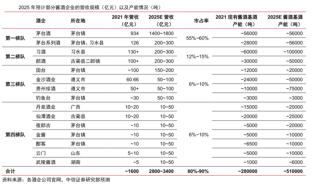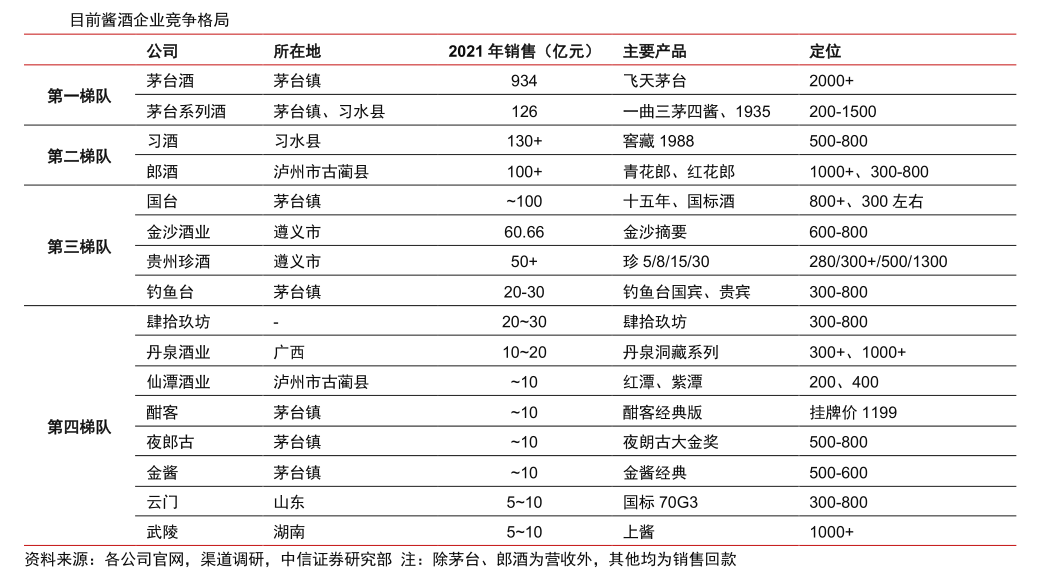 我们认为,经过2016-2021年行业高速发展后,目前酱酒企业已形成明显梯队且位次稳固,龙头企业在产品占位、产能扩张、品牌宣传、渠道网络等各个方面已逐步完成布局,行业已过了品类红利下所有参与者均能轻易实现快速发展的阶段。