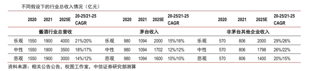 我们预计,2025年规模以上酱酒企业营业收入将达到3000~4000亿元、2020-2025/2021-2025年复合增长率分别为14%~21%/12%~20%,2025年酱酒营收全行业占比预计将达到40%~50%、较2020/2021年提升约17pcts/12pcts。