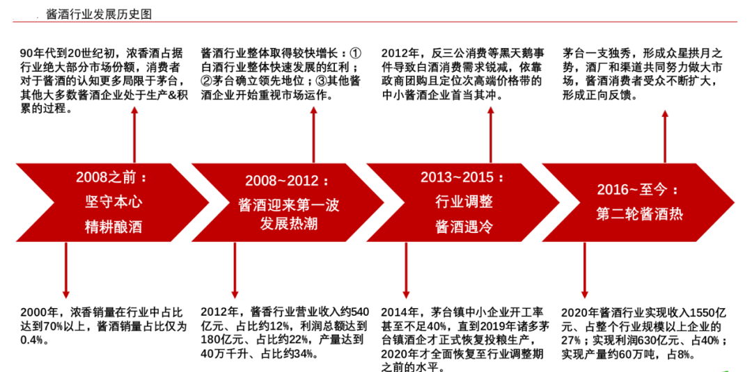 回顾历史,酱酒行业整体经过四个阶段发展: