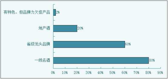 产品组合上,被调研对象基本上统一给出了一个结论:全国品牌+省内一二线品牌+利润型产品。他们表示,前两个是提升公司品牌影响力的产品,可以增加获客率,但是利润不高,烟酒店想要活得好,必须要有利润型产品,要么自己开发品牌,要么就代理一些名酒的开发品牌,自己开发对实力要求高,所以大部分烟酒店选择代理产品。